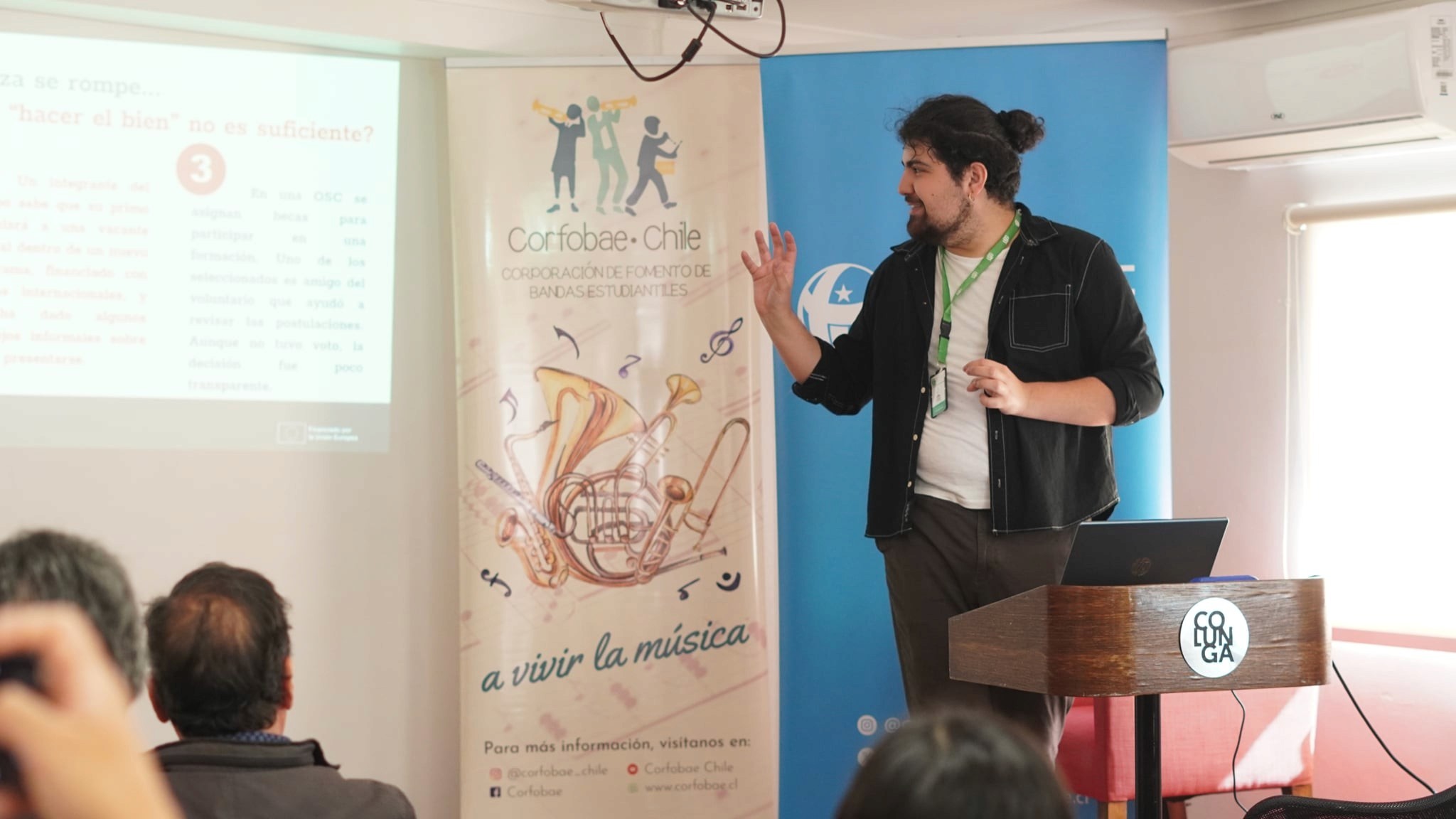 El tercer día del seminario se trasladó al edificio de Fundación Colunga, donde se llevaron a cabo charlas y talleres orientados al fortalecimiento del oficio de la luthería desde una perspectiva organizacional, ética y creativa. La sesión incluyó una charla informativa impartida por Chile Transparente. La exposición, a cargo de Andreas Guillén, abordó herramientas prácticas para la gestión ética, participativa y transparente de organizaciones culturales y sociales. Posteriormente, se realizó un conversatorio con Gabriel Matthey, compositor, ingeniero civil y magíster en Gestión Cultural, quien compartió reflexiones sobre la relación entre música, cultura y territorio. Su intervención permitió ampliar la mirada del oficio de la luthería hacia las dimensiones históricas, estéticas y sociales que rodean la creación y la práctica musical. La jornada finalizó con un taller dirigido por Dagnne Rojas, directora ejecutiva de Corfobae Chile, quien abordó elementos centrales de la gestión cultural aplicada al desarrollo de proyectos vinculados a la luthería. El espacio abrió camino para la formulación de una propuesta orientada a acoger legalmente al gremio de luthieres en Chile, un avance significativo para la profesionalización y articulación del sector.